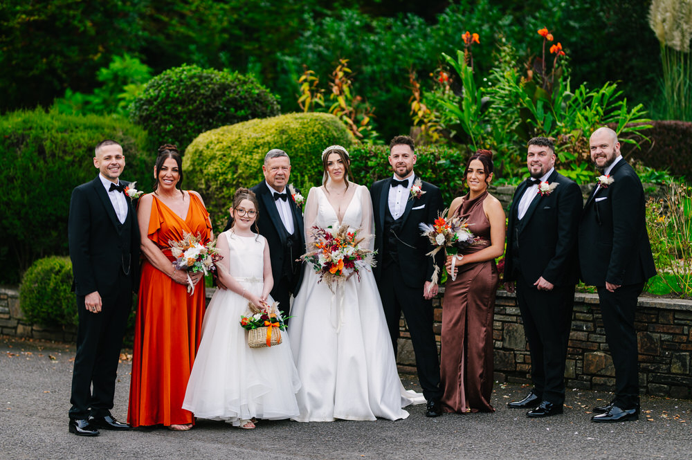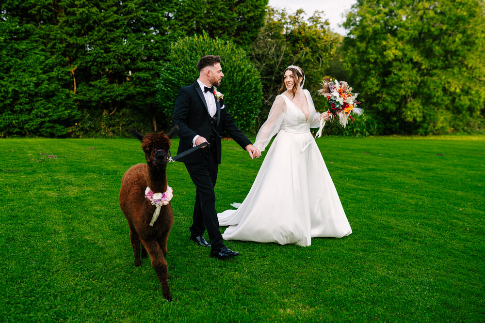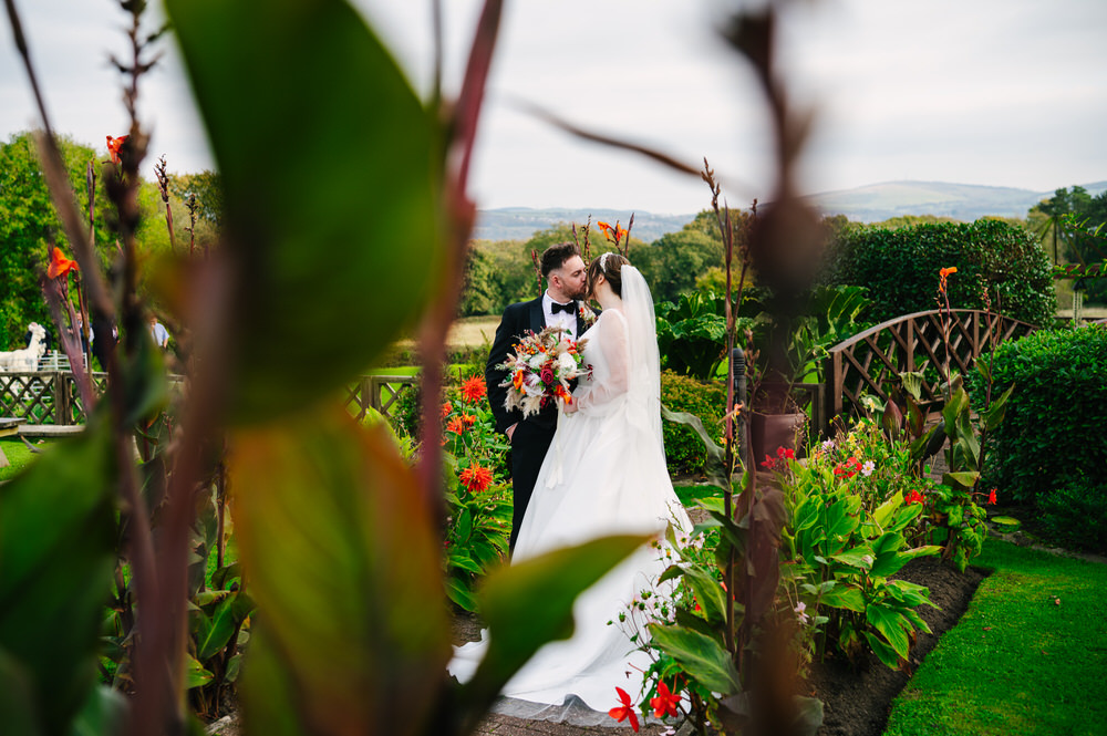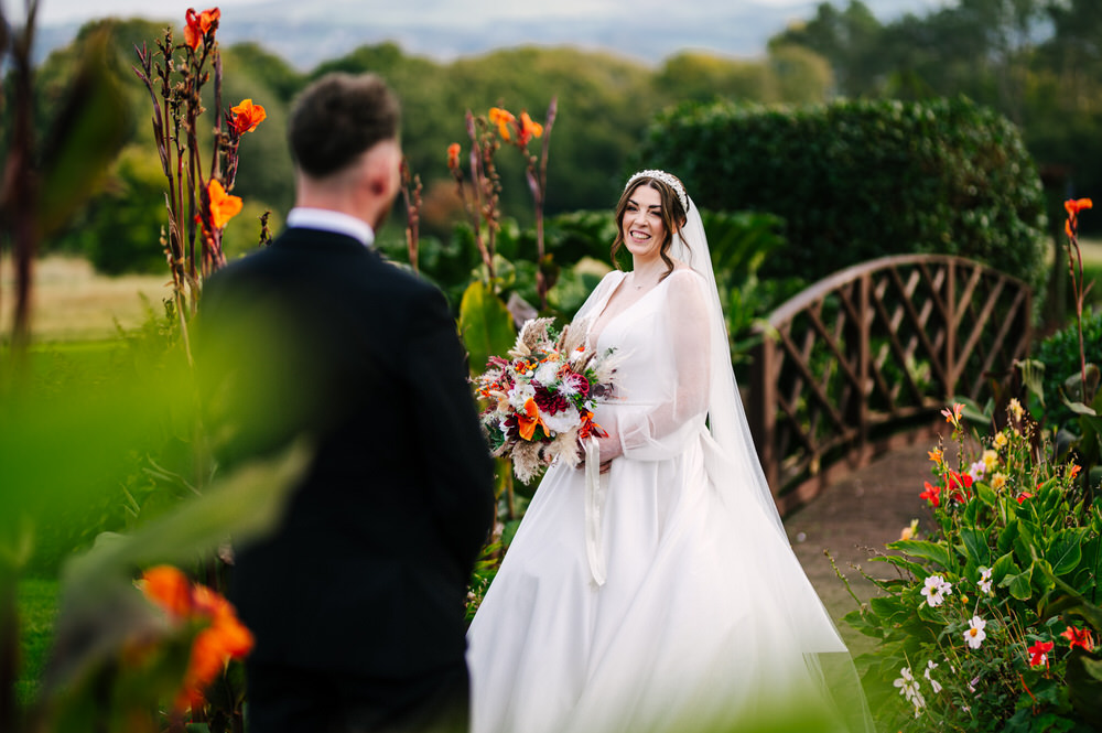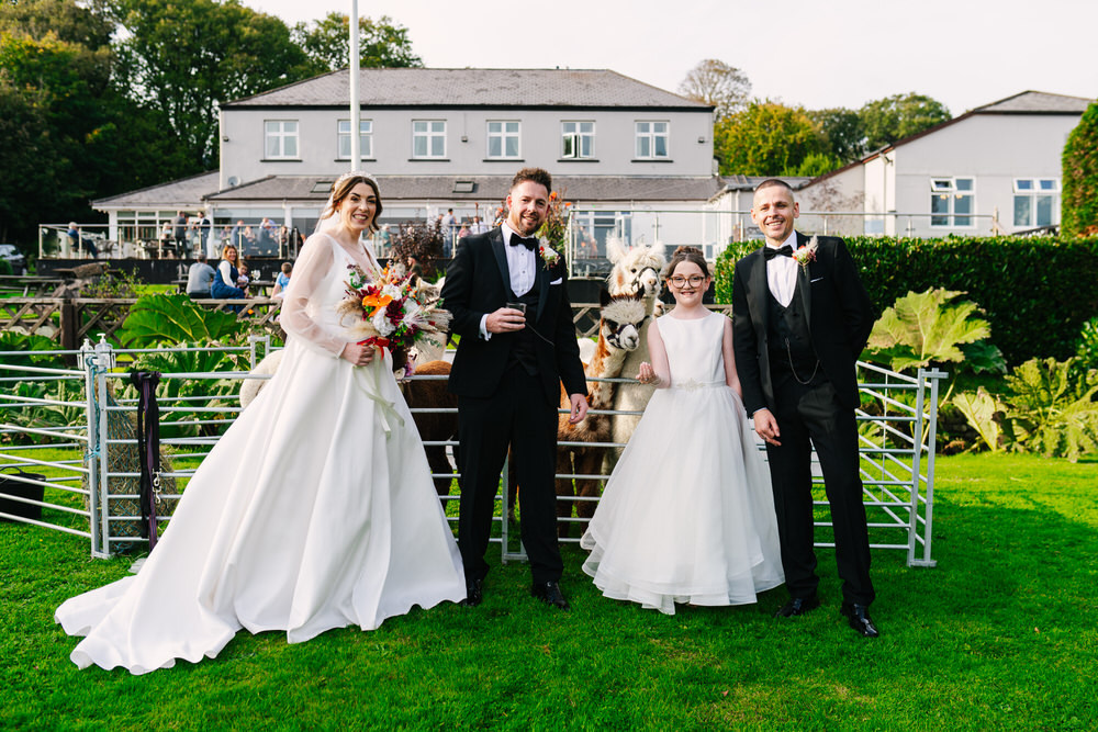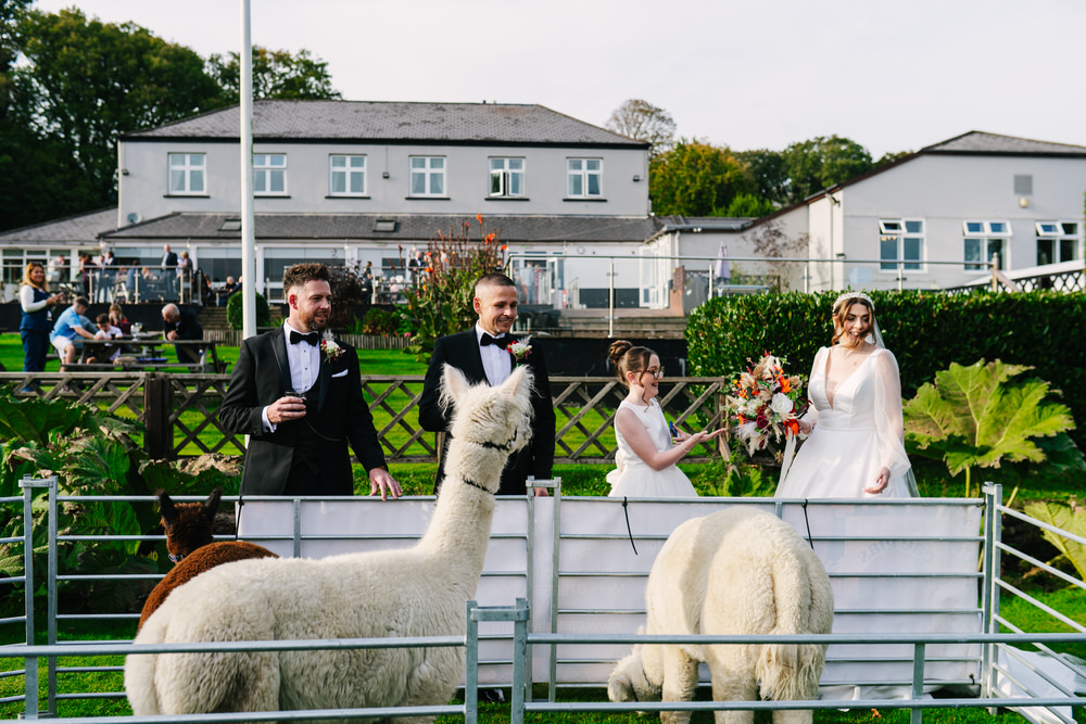 Onto some lush portraits of Tom and Natalie after some alpaca petting and feeding. The grounds of the Glyn Clydach Hotel offer some lovely spots and angles for portraits. The gardeners hard work did not go un-noticed, check out those autumn colour theme matching flowers! As we had plenty of good weather we couldn’t miss out on a stroll through the long grass field at the bottom of the grounds. You’d hardly believe you were in Neath with a view over the hills, long grass and tall trees, the perfect spot to switch it up a bit and not tear you away from the party for too long. What you see is a couple madly in love and big smiles, but what you don’t see is Natalie, Jon and Tom taking the p!ss out of Chantele for looking like some sort of national geographic stalker down low in the long grass for some creative angles. Sorry Chantele! You have to make it fun though and laugh through it, no wooden posing or games of twister, just go with the flow and enjoy the moment.