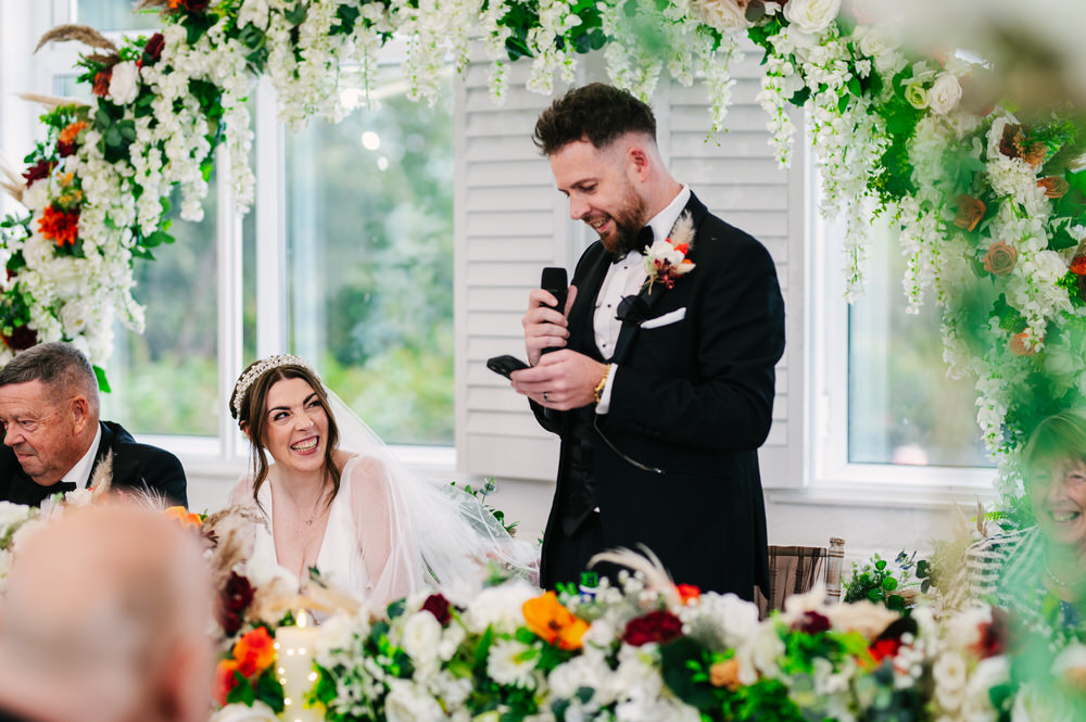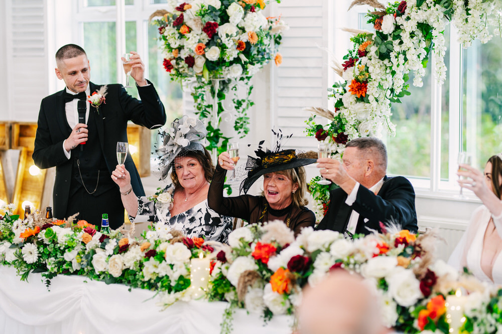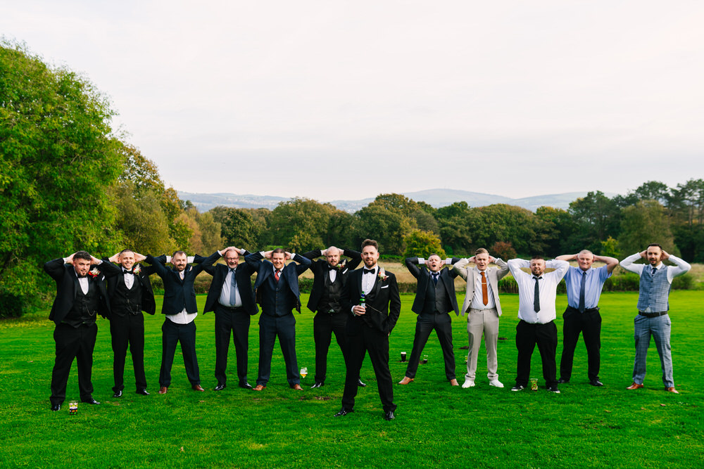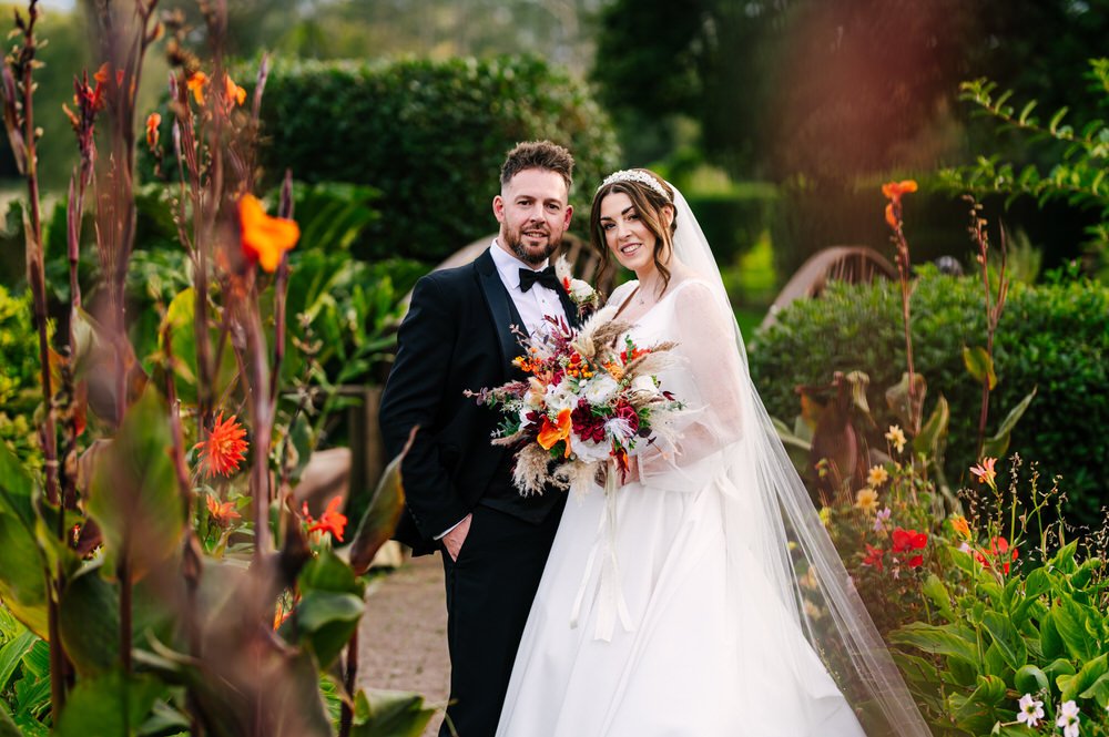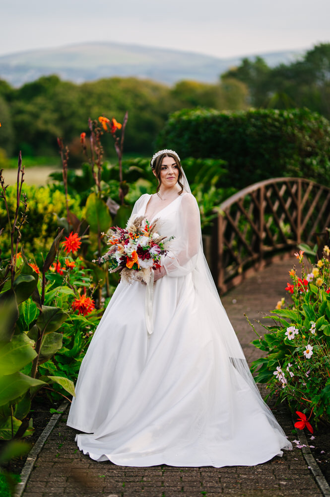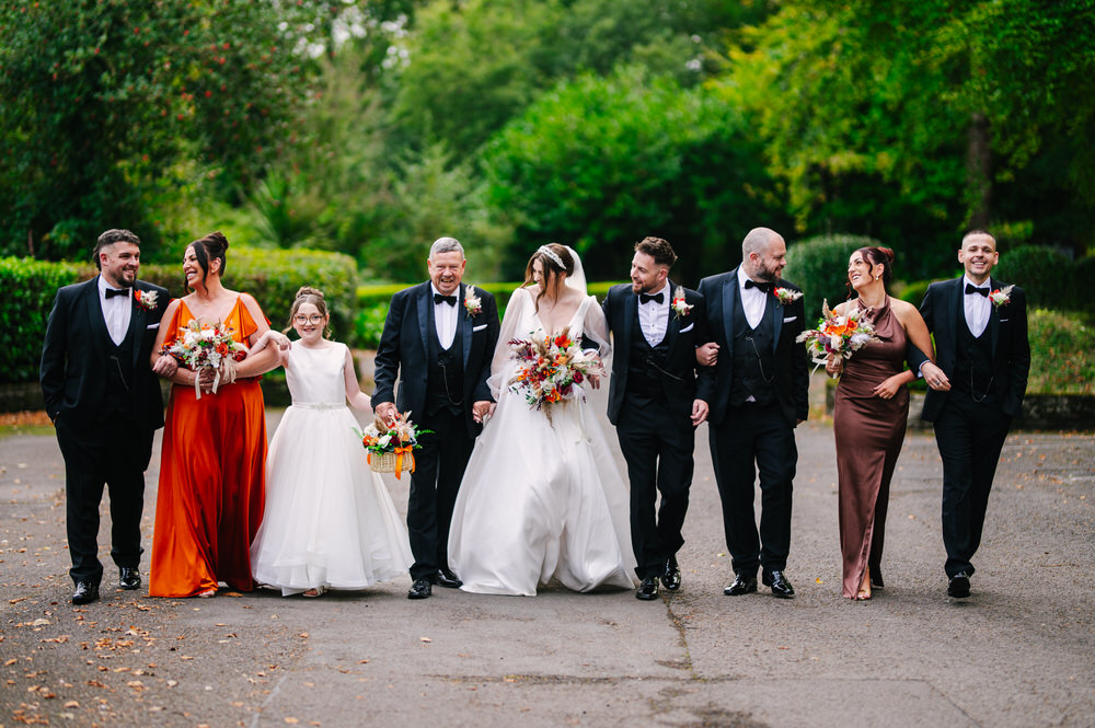 Onto some lush portraits of Tom and Natalie after some alpaca petting and feeding. The grounds of the Glyn Clydach Hotel offer some lovely spots and angles for portraits. The gardeners hard work did not go un-noticed, check out those autumn colour theme matching flowers! As we had plenty of good weather we couldn’t miss out on a stroll through the long grass field at the bottom of the grounds. You’d hardly believe you were in Neath with a view over the hills, long grass and tall trees, the perfect spot to switch it up a bit and not tear you away from the party for too long. What you see is a couple madly in love and big smiles, but what you don’t see is Natalie, Jon and Tom taking the p!ss out of Chantele for looking like some sort of national geographic stalker down low in the long grass for some creative angles. Sorry Chantele! You have to make it fun though and laugh through it, no wooden posing or games of twister, just go with the flow and enjoy the moment.