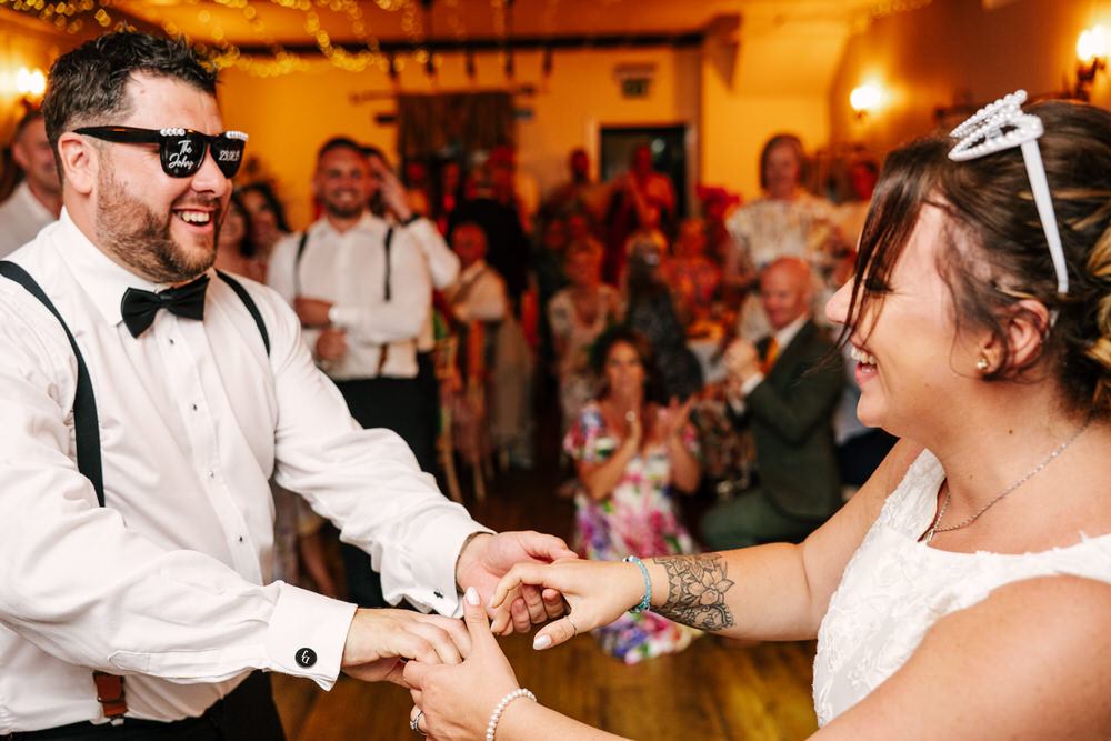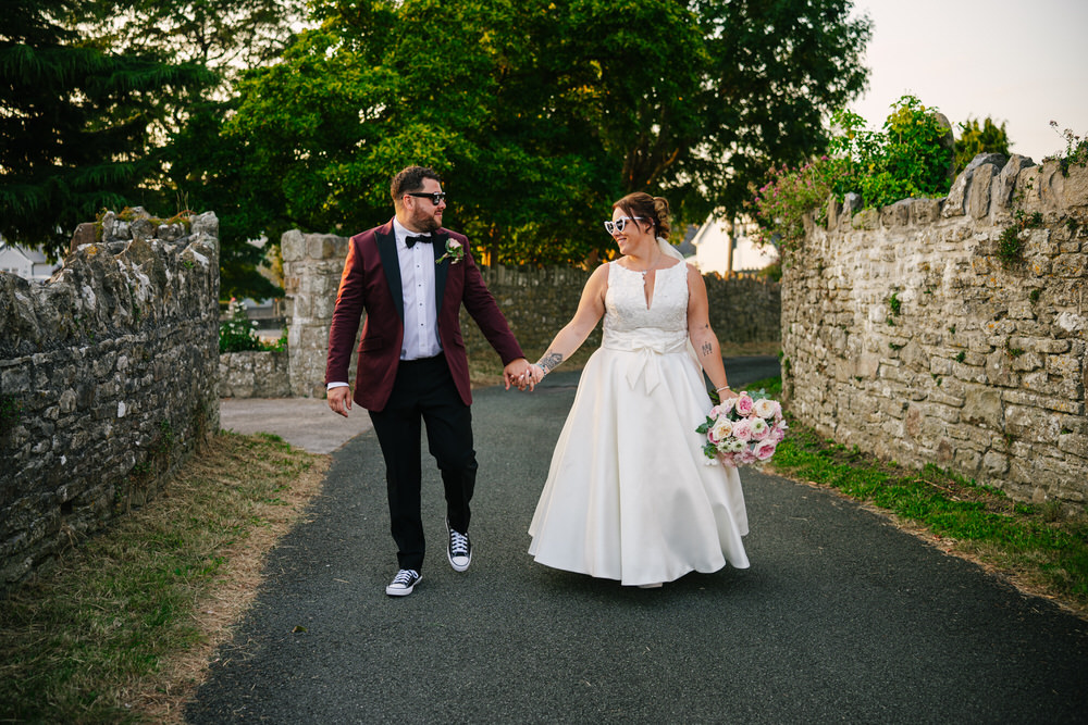 To fit in with their relaxed wedding photography vibes, instead of bundling into a car to get some portraits at Merthyr Mawr like we had originally planned , we found the perfect spot literally across the road from The Great House. Catching the last of that beautiful golden hour light, with a dress swoosh, some cwtches and oodles of laughs, we only stole them away for 5 mins before they got stuck in to the dance floor throwing some shapes and partying the night away.